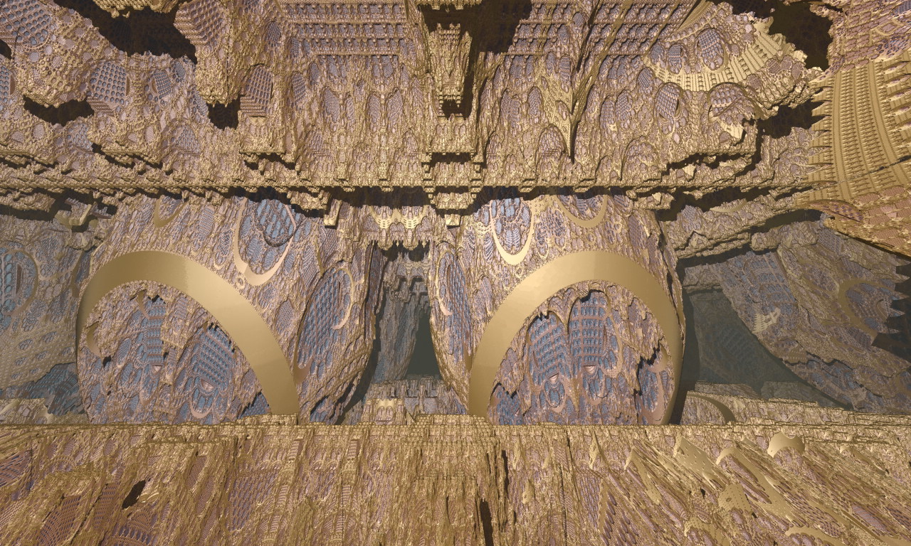 In this post I described a type of void-sponge based on the 6 regular polychora (5-cell, 8-cell, 16-cell, 24-cell, 120-cell and 600-cell). A nice property of these is their symmetry to 4D rotations projected stereographically into 3D, in other words transformations that rotate around a circular ring.
