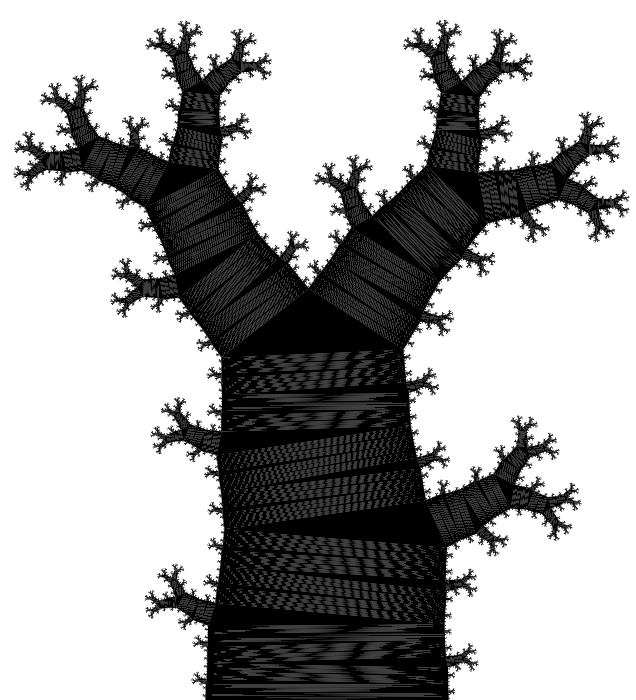 Unlike the elliptic transformation, this contains unbounded contraction (at the top) and expansion at the bottom. It would be harder to generate biophysically, but not impossible, it would need the physical cells to redistribute as it moves. Or in other words, the cells would need to coordinate the holes to move locally upwards without moving the cells upwards.