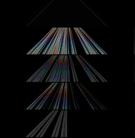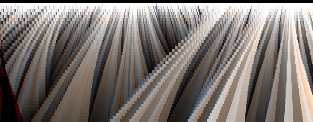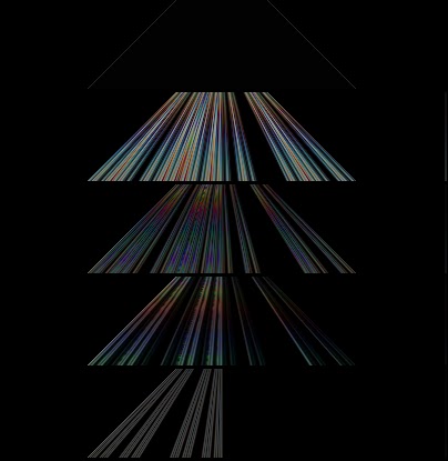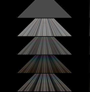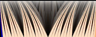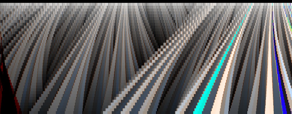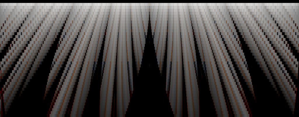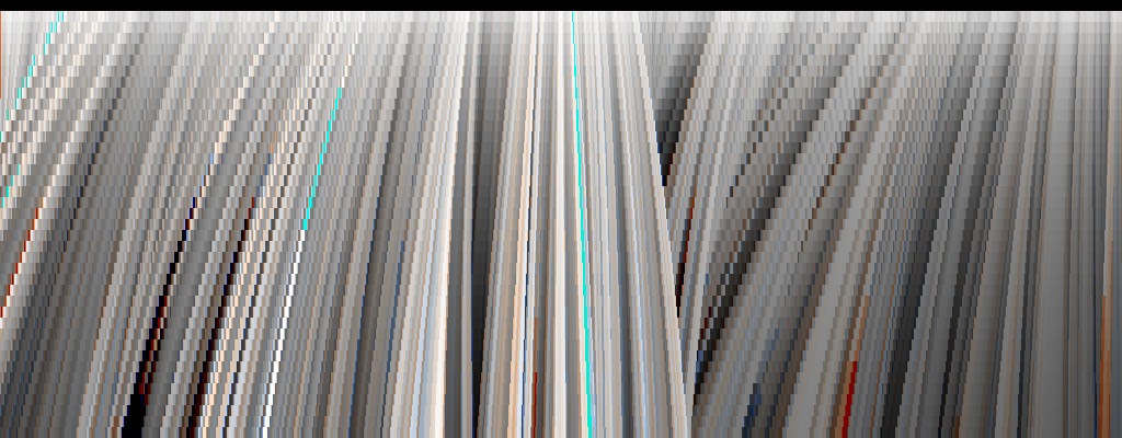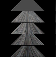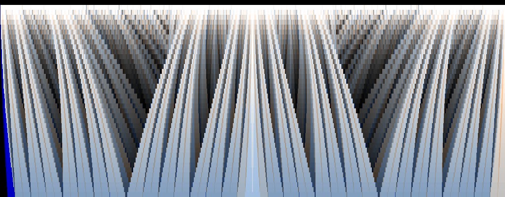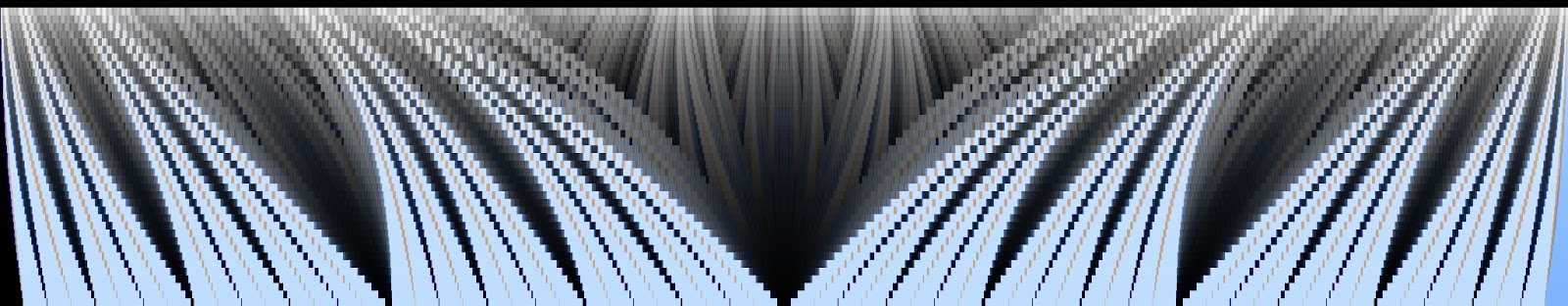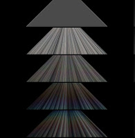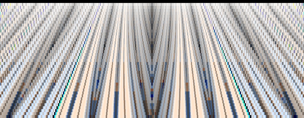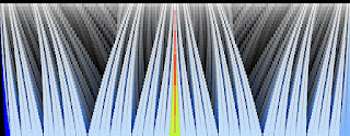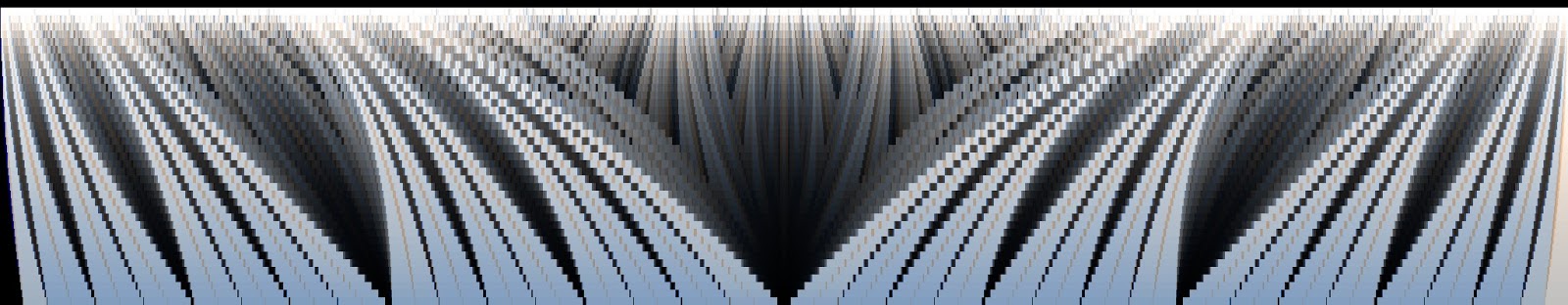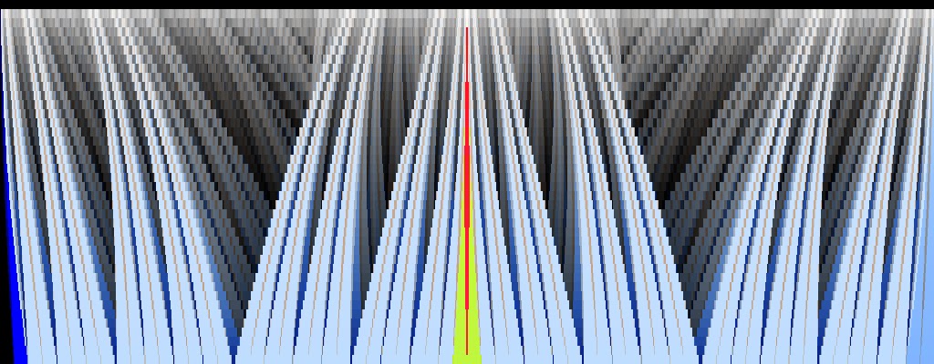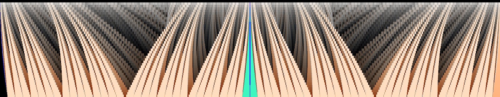 The above images use very few view angles to avoid the colour bias, we can also avoid the colour bias by looking at the curve head-on, and can therefore look at a continuous increase in the colour frequency on the x axis, against increasing dimension downwards on the y axis:
