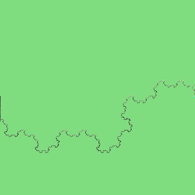 - hue cycles with scale of the Koch curve (first sections suggest it doesn't really do this for Levy curves)