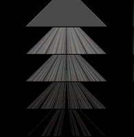 Below we show such a fractal lit directly head on (left) and lit one radian from the left side (right). for increasing coherence width (downwards) from 1 pixel to 8 pixels. Each column is increasing dimension from 1 (top).