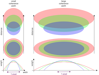 - coloration is not really effected by coherence width (how wide the area where interference occurs), only reduces for very small width.