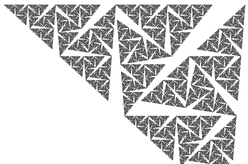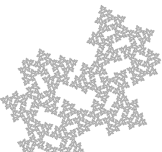 This last curve is especially interesting because, like the Von Koch curve, it curls into a solid triangle without any overlap, here is is at 85.5 degrees: